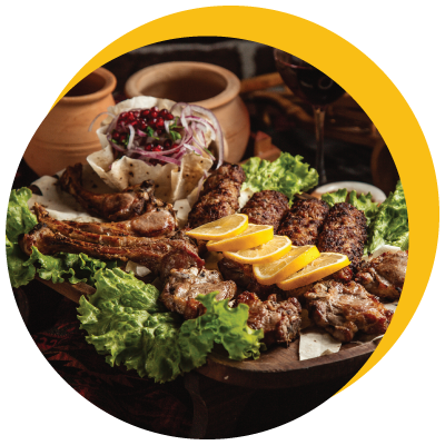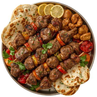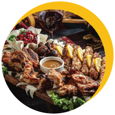 Chicken Tikka, Lamb Kebab, Chicken Kebab, Mix Shawarma: Lamb & Chicken, 4pcs chicken wings, Naan bread or Rice, Fries, Fresh mixed salad, 2 Sauces of your choice.