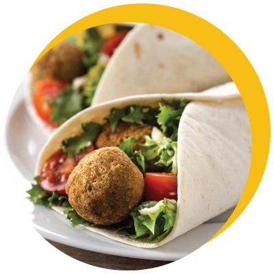 Crispy falafel with hummus, fresh salad & choice of your sauce in traditional bread.