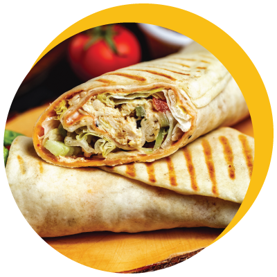 Grilled marinated chicken in a wrap with your choice of salad and sauce